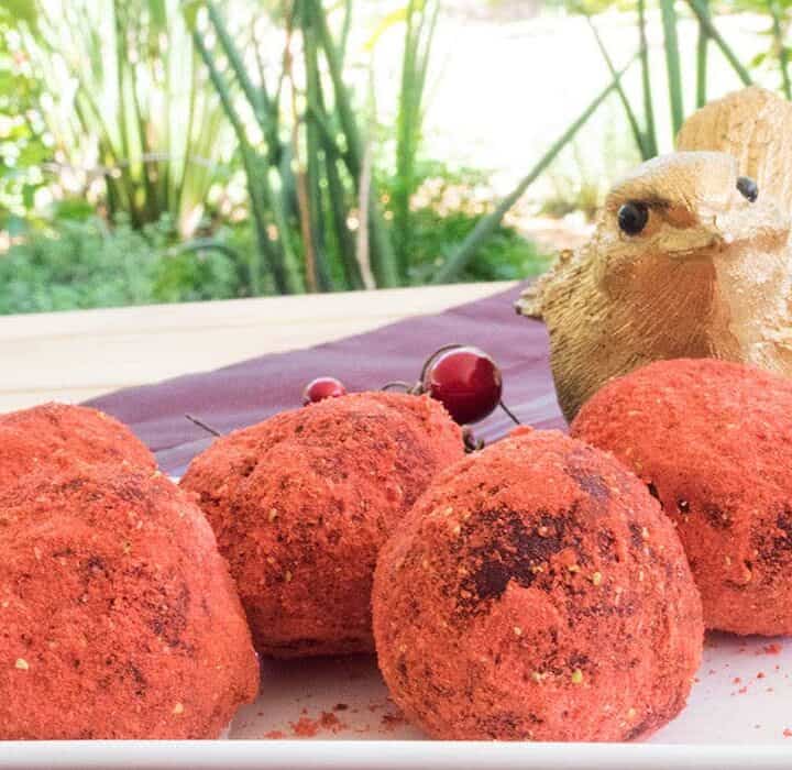 Festive strawberry dipped chocolate truffles